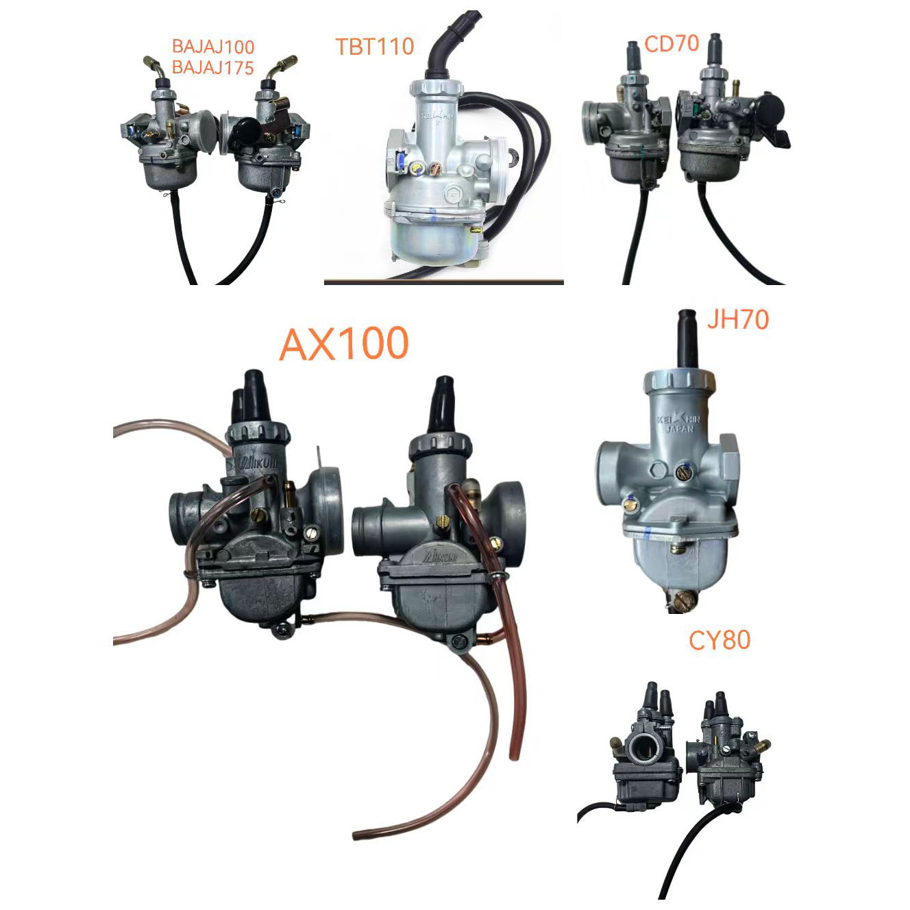 【Carburetor Manufacturer Direct Sales】We supply carburetors for models including JH70, CD70, CY80, Tianhong 90, Dy100, AX100, Thai Honda 110, CG125, CG150, CG200, CG150 Accelerator Pump, CG200 Accelerator Pump Pz33 Off-road, Gy60, GY6-125, Gongzhu 100, Qiaoge 100, EN125, Baijiaji 100/175, NSR24, NSR28, etc. OEM service is available. For friends who need to know more about products, please contact Guangzhou Office: