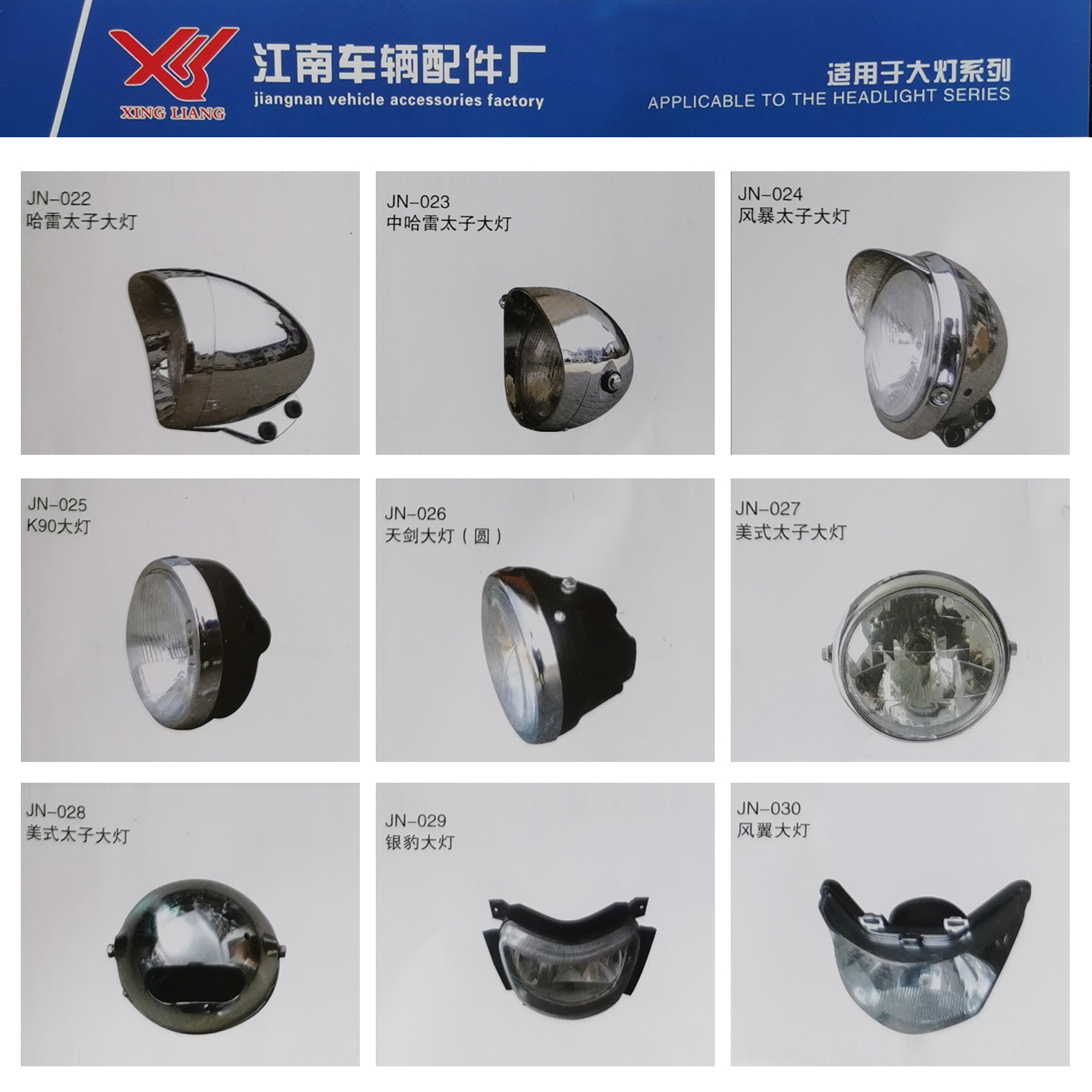 (jiangnancheliang)【Changzhou Jiangnan Vehicle Parts Factory】Specializes in manufacturing various motorcycle front headlights, headlight glasses and lamp spare parts. Our products are suitable for markets at home and abroad! We offer high quality at competitive prices, with preferential terms for large orders! Welcome new and old customers to call for quotation and discuss cooperation for mutual benefit!