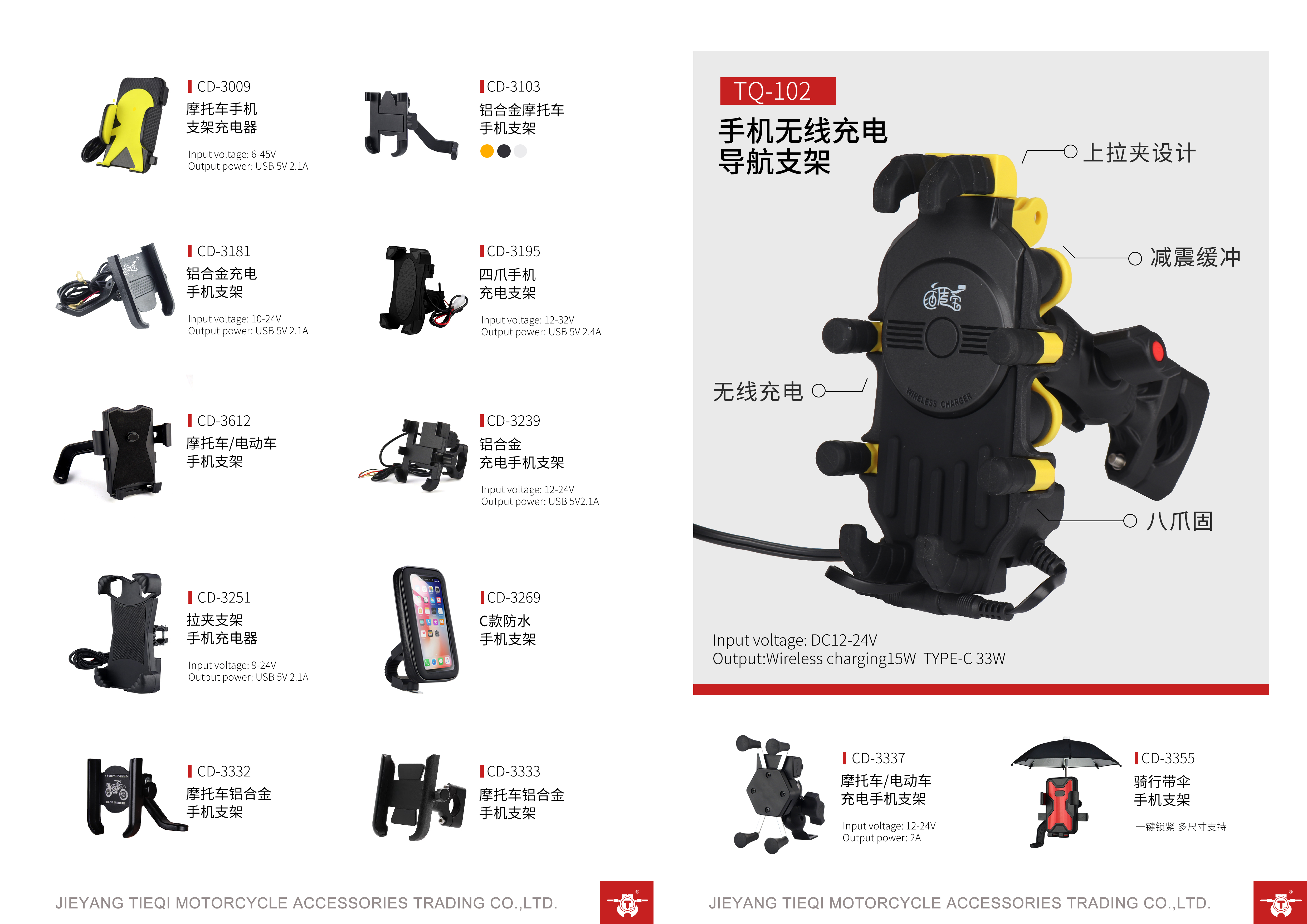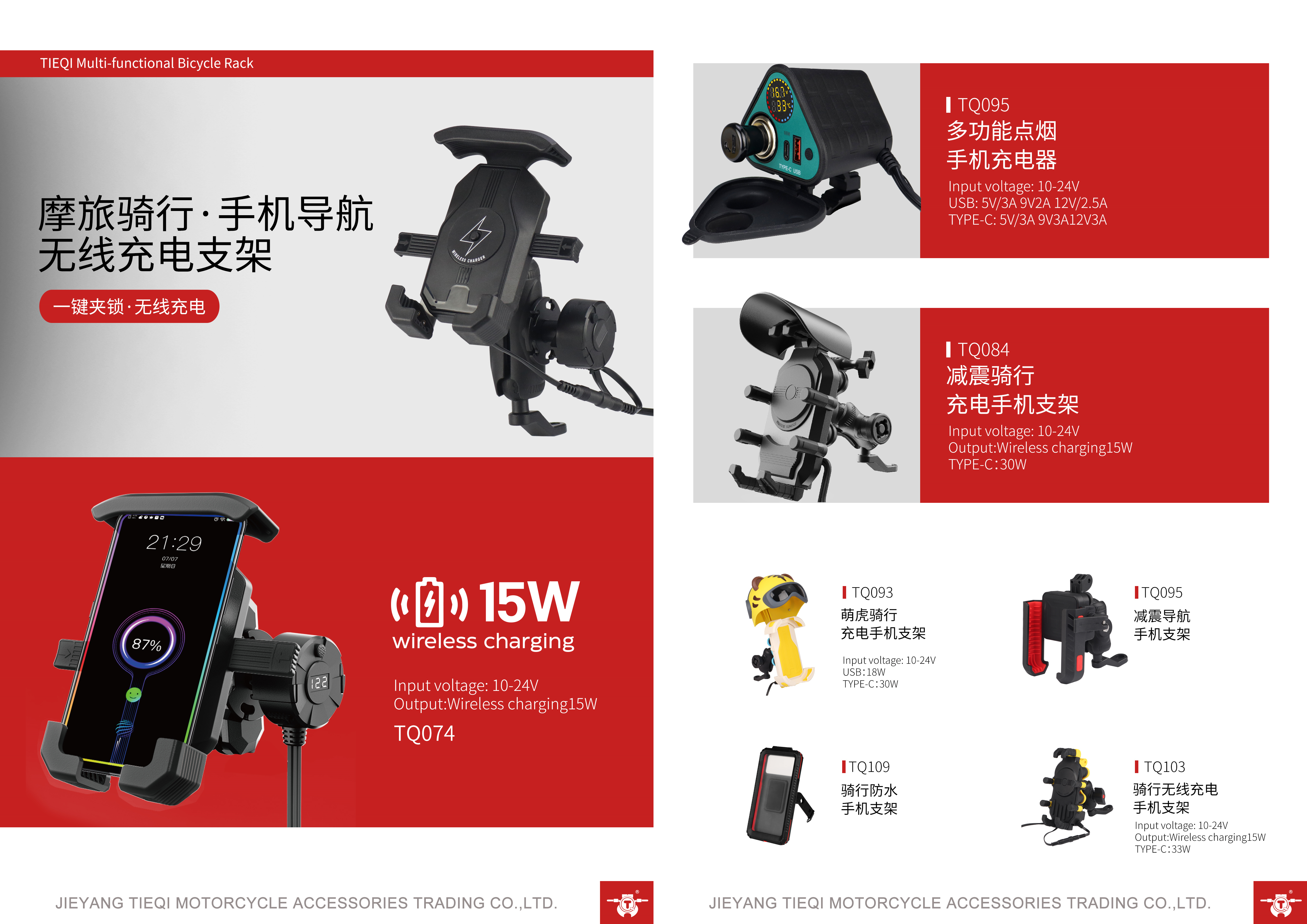 We primarily manufacture USB chargers and charging phone holders for motorcycles, electric vehicles, bicycles, and mobile devices.